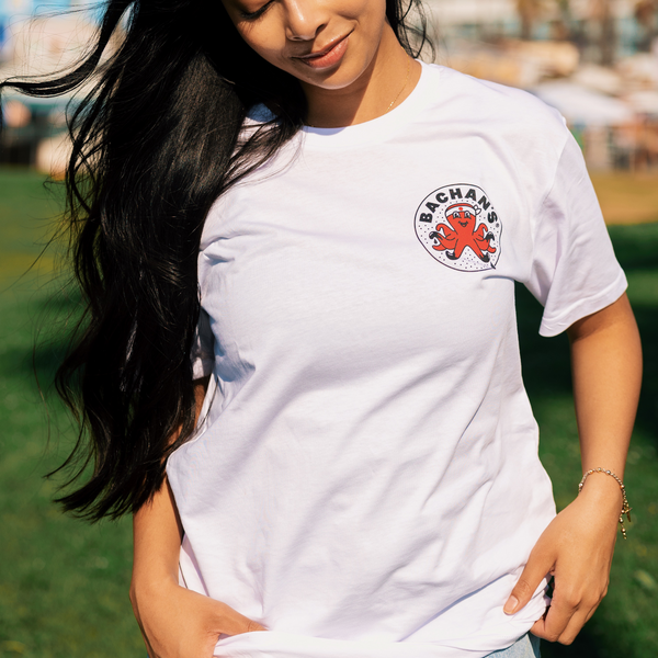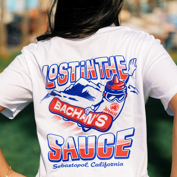 It took us awhile, but we finally fashioned a way to give someone the cold shoulder in a good way. Enter our ice-white Snowboard Tee featuring a full-sending, gnar-shredding Bachan’s bottle on the back, our circle Octo logo on the front, and a vibe so chill, it gives you shivers. BONUS: this comfy cotton tee does not require refrigeration after opening and keeps you looking fresh in all conditions.