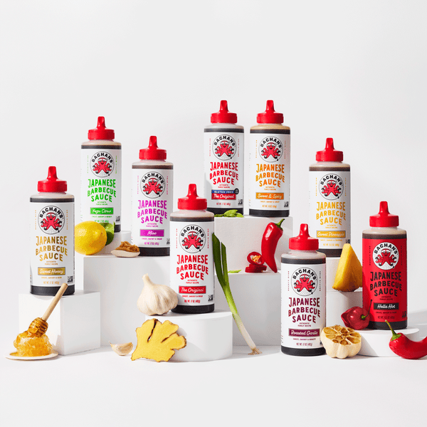 Non-GMO Soy Sauce (Water, Soybeans, Wheat, Salt), Cane Sugar, Red Jalapeño Puree (Red Jalapeño Peppers, Salt, Vinegar), Red Habanero Puree (Red Habanero Peppers, Salt, Vinegar), Tomato Paste, Mirin (Water, Rice, Koji Seed, Sea Salt), Organic Ginger, Green Onion, Organic Rice Vinegar, Organic Garlic, Sea Salt, Organic Toasted Sesame Oil.