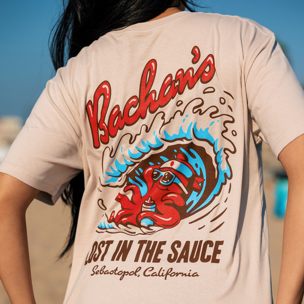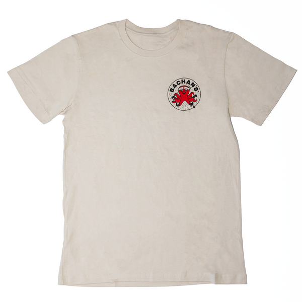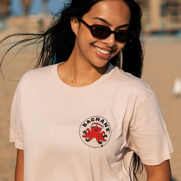 The Barrel Tee features our beloved Octo chilling right in the barrel of a perfect wave. This effortlessly stylish lightweight tee is the perfect way to show your love for Bachan's.