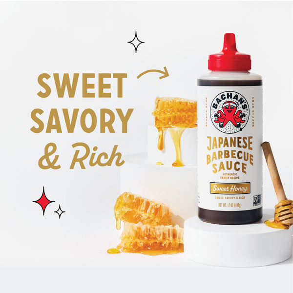 Our Sweet Honey Japanese Barbecue Sauce is made with honey but that doesn't mean it's all sweet and innocent. The honey makes the umami flavor hit harder. The soy, ginger, and green onion pop. Our crave-worthy flavor always comes from simple, clean ingredients.Â