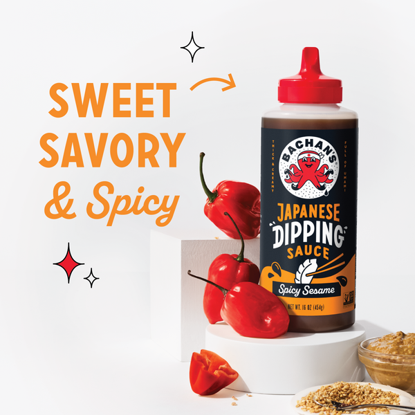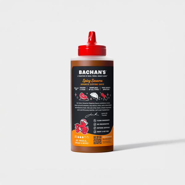 Double-dipping is permitted with our Spicy Sesame Japanese Dipping Sauce. You get rich, dippable creaminess from stone-ground sesame. Then bold, savory flavor from non-GMO soy sauce and miso. And finally, a slow build of red habanero heat—only clean, simple ingredients.