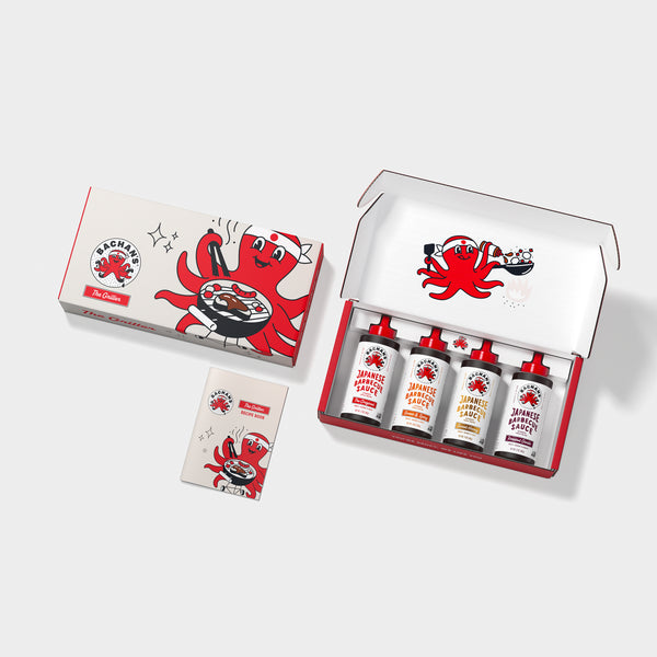 Gift-giving is a big deal in Japan. It’s an artform that has been passed down through generations. It even has its own special name: omiyage. We made this Griller Gift Box so you get in on the tradition too. Inside are four of our Japanese Barbecue Sauces (Original, Sweet & Spicy, Sweet Honey and Roasted Garlic), a book of sizzle-ready recipes, and a little red Octo pin for a touch of “flare” for your favorite griller.